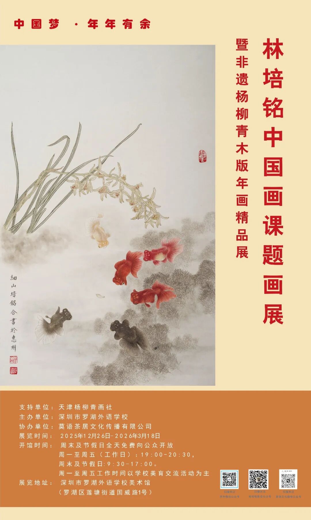 中国梦·年年有余一林培铭中国画作品展在2025年12月26日至2026年3月18在深圳罗湖外语学校美术馆举行。